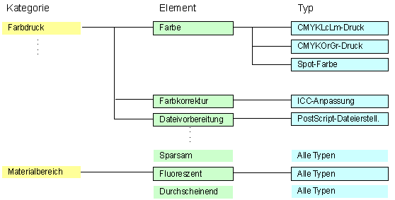 Die Posten des Voranschlags sind nach Kategorie, Element und Typ sortiert: