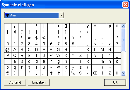 - Wählen Sie die Schrift und klicken Sie auf das gewünschte Sonderzeichen.