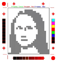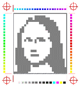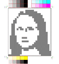 Um den Rand des Auftrags werden Farbmuster mit abgestuften CMY-Farben und Graustufen gedruckt. |
