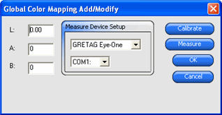 Klicken Sie auf Messen, um mit einem Colorimeter eine Farbmessung eines Beispiels für die gewünschte Farbe durchzuführen.